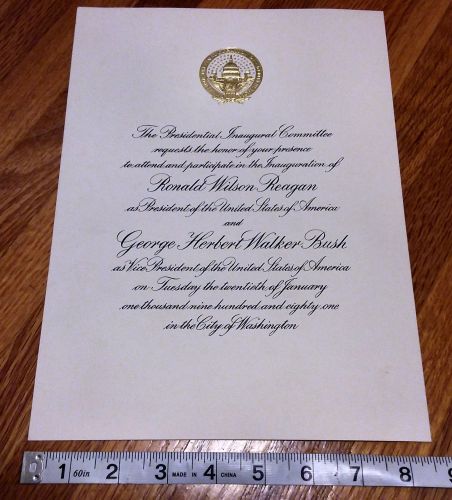 Printed on ivory cardstock, both the black lettering and gold foil seal are embossed, measures 8.5" X 11". Acquired in an estate sale. No envelope included. Can't verify if an "original" or a "souvenir" version, but our book store is located in a state capital city where a LOT of politically active people live who DID and DO attend such events. Priced as if souvenir.