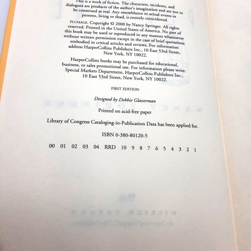 Plumage by Nancy Springer - 2000 HB First Edition, First Printing