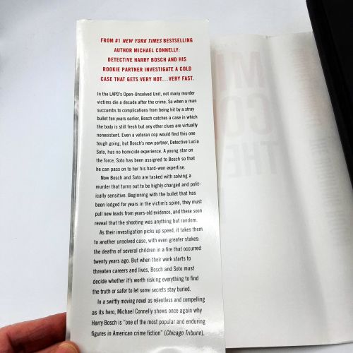 Synopsis: 388 pages. "In the LAPD’s Open-Unsolved Unit, not many murder victims die a decade after the crime. So when a man succumbs to complications from being shot by a stray bullet ten years earlier, Bosch catches a case in which the body is still fresh, but any other clues are virtually nonexistent. Even a veteran cop would find this one tough going, but Bosch’s new partner, Detective Lucia Soto, has no homicide experience. A young star in the department, Soto has been assigned to Bosch so that he can pass on to her his hard-won expertise."