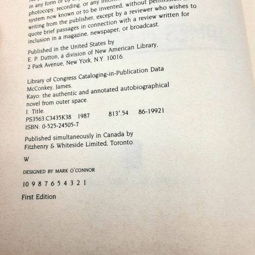 Kayo by James McConkey 1987 HBDJ Stated First Edition, First Priinting, Ex Lib.