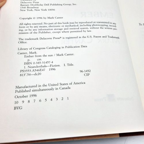 Delacorte Press, New York. October, 1996 First Printing as shown in number line.