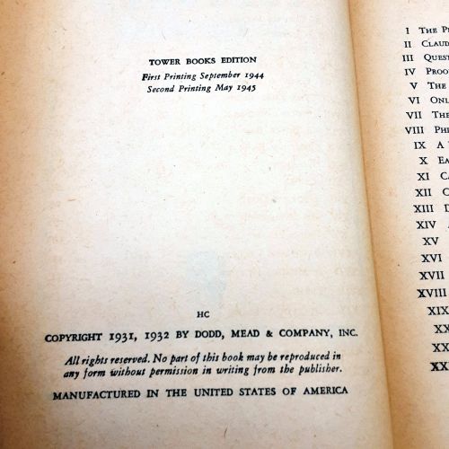 Publisher: The World Publishing Company, Cleveland and New York. Tower Books Edition. Stated Second Printing May 1945.