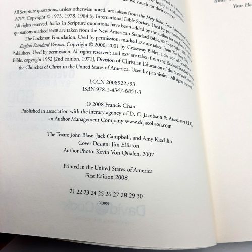 SYNOPSIS: 205 pages. With Danae Yankoski. "Overwhelmed By a Relentless God." Publisher: David C. Cook. 2008. Number line shows as 21st Printing.