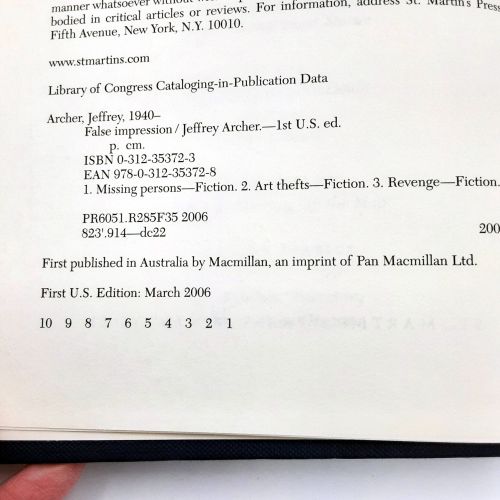 False Impression by Jeffrey Archer 2006 HBDJ 1st American Edition, 1st Printing