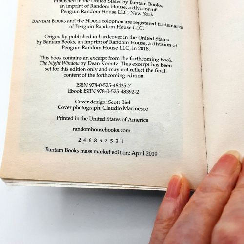 Bantam Books, New York. Stated April 2019 Mass Market Edition, 1st printing as shown by number line.