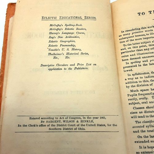 1865 McGuffey’s McGuffys Eclectic Spelling Book Electrotype Edition HB + BONUS