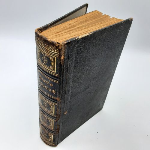 Fair condition. Slipcase still sturdy, though some loosening at upper front seams, rubbed and edge wear. Volume wear both inside and out includes rubbing, bumping, soiling, foxing, age yellowing, small edge chips. Amazingly, no markings, rips or holes. Turndown corner creases can be straightened out. All text itself is completely clear of markings and legible. Many pics included to show condition. Extremely rare to find in original slipcase.
