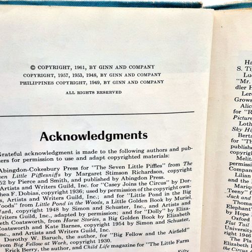 SYNOPSIS: 256 pages. Illustrated by numerous illustrators. Publisher: Ginn and Company. 1961 Revised Edition. Printing number line found in back of book is pictured.