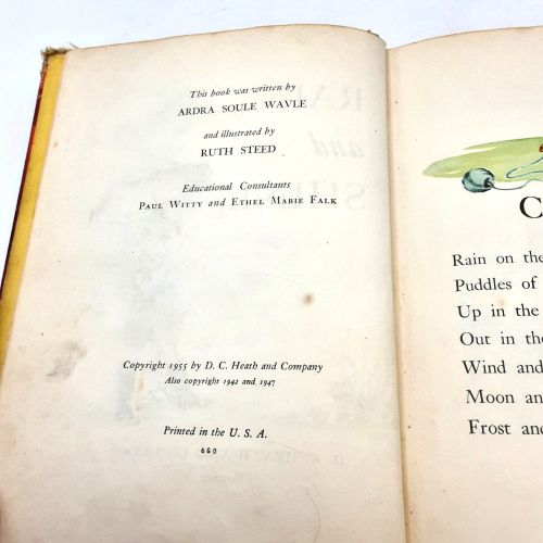 SYNOPSIS: 119 pages followed by "For the Teacher" pages. Illustrated by Ruth Steed. Publisher: D. C. Heath and Company, Boston. 1955 Revised Edition. Printing number line found in back of book is pictured.