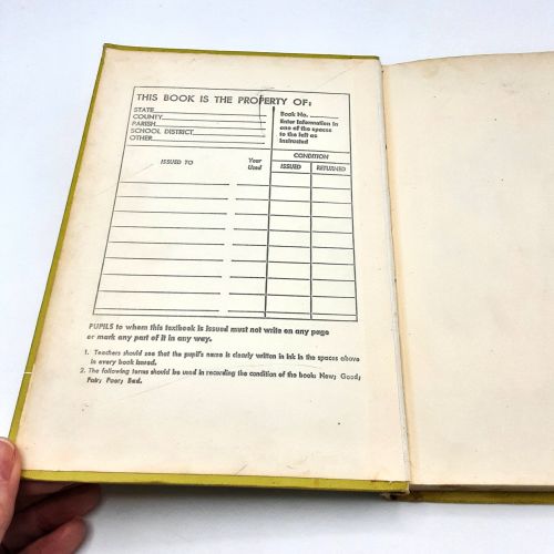 Condition: GOOD condition. May have associated Ex lib markings, stampings, redactions, labels, card jacket, possible removed pages with card jacket, occasional turndown crease, etc. Yellow tweed cloth pictorial boards with moderate wear, inner pages age yellowed, soiling or tanning, but no tears, rips, or holes. Two of the exercise pages were completed in pencil by student (see pic). Remainder of pages flat, bright, clear and tightly bound.