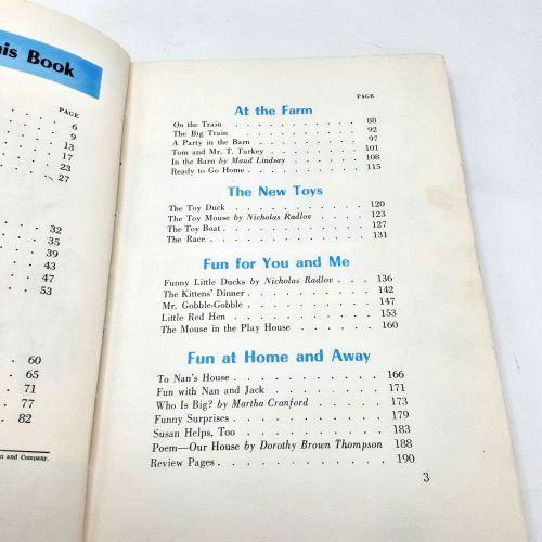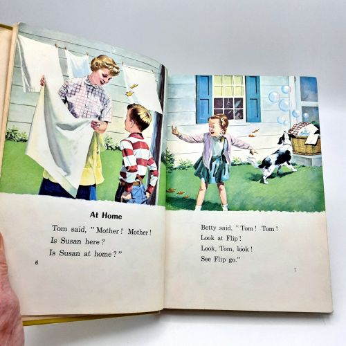 SYNOPSIS: 195 pages. Illustrated. Vintage school textbook featuring Tom, Betty, Susan, Frisky, Flip, Mother, and Father. Section in back a 4 pages of exercises. Publisher: Ginn and Company. 1964 Revised Edition. Number line in back of book is pictured.